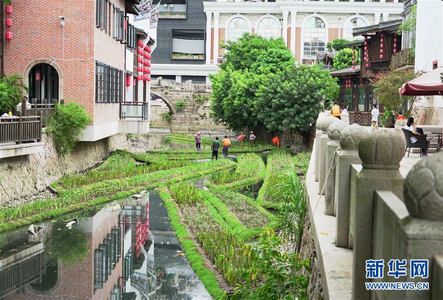 (新華網(wǎng)報道)9月12日,工人在位于福州上下杭歷史文化街區(qū)的三捷河上制作生態(tài)浮動濕地。 近年來,福建省福州市大力開展城區(qū)水系黑臭水體系統(tǒng)綜合整治建設,采取了生態(tài)護坡、生態(tài)河床、生態(tài)浮動濕地、水生植物種植等水系生態(tài)修復鏈的構建,來提升城市內(nèi)河水質(zhì)的自凈能力。( 新華社記者林善傳攝)