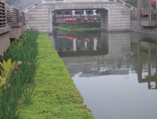 復(fù)合纖維浮動(dòng)濕地與高效氣溶技術(shù)集成的生態(tài)曝氣氧化池應(yīng)用大大提升了單位水體容量的污染物削減能力,應(yīng)用于污水處理廠退水的升級(jí)改造,通過合理配置,結(jié)合人工濕地等工藝,在減少土地用量的同時(shí),能夠?qū)⒊R?guī)排水提升到地表IV類水標(biāo)準(zhǔn)。