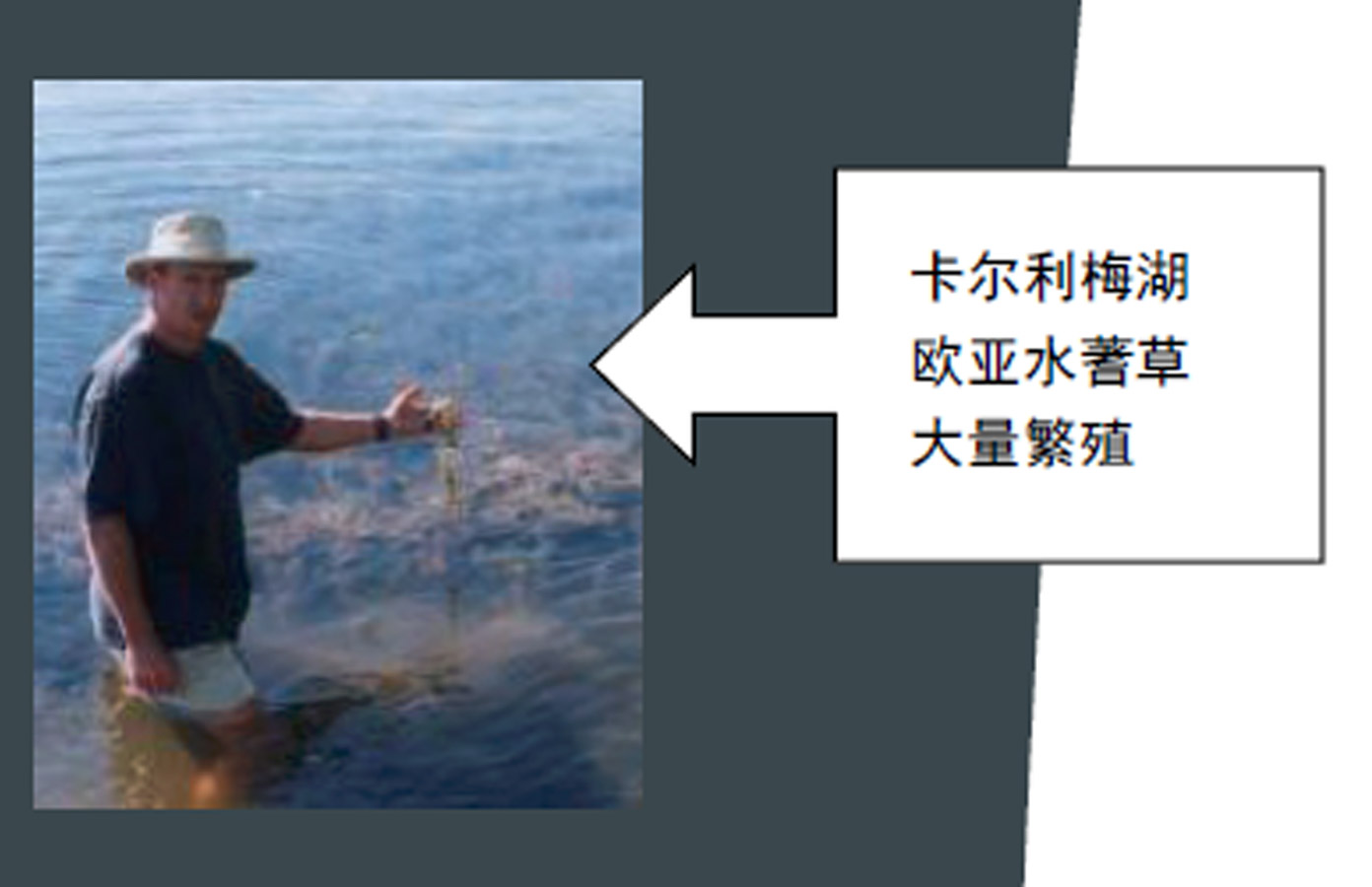 卡爾利梅湖位于加拿大魁北克省,水體面積22公頃,最大水深4.5米,平均水深3米。水體富營養(yǎng)化嚴重,藍藻爆發(fā),水體透明度低,歐亞水蓍草大量繁殖(每年需收割3-5次),鐵錳離子超標,硫化氫超標,水生植物種群數量少。